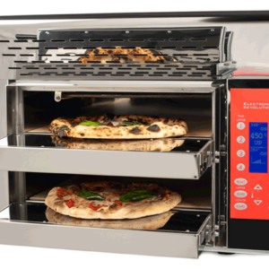 Le double Four à Pizza Révolution est électrique, pour pizza et cuisine professionnelle, avec des performances très élevées avec une consommation d’énergie réduite!Deux températures indépendantes à l'intérieur des chambres.Réglez les temps de cuisson, un son sera émis lorsque le temps sera écoulé.Réglez la température jusqu'à 520°.Visualisez le nombre de pizzas